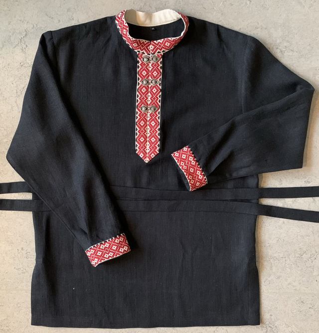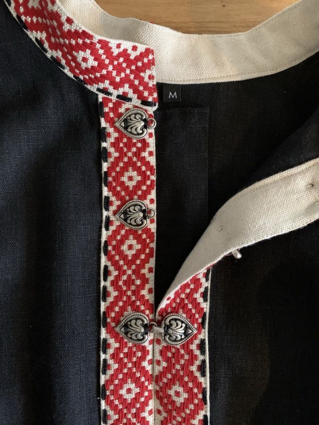 Karjalaishenkinen paita pellavakankaasta. Koristenauha on kudottu käsin ja kuviolangan materiaali on merseroitu puuvilla. Paitoja saatavilla XXS - XXXXL -kokoisina ja joko tinaisilla sydänsoljilla tai pronssisilla suomalaisilla soljilla, jotka on valmistanut MYK Jewel. Pesu joko käsin tai 40-60 asteen hienopesussa nurin käännettynä. Höyrytys tai silitys kosteana kolmen pisteen lämmöllä. Pesussa pellavasta voi tarttua nöyhtää muuhun pyykkiin. Mittataulukko ja mittausohjeet löytyvät viimeisistä kuvista ja mikäli johonkin mittaan tarvitaan muutoksia, lähetä miulle viesti sähköpostilla hannele.rusila@hannelerusila.fi tai puh. 0456390946.