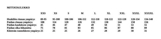 Löydät mittataulukon suuremmassa koossa täältä.